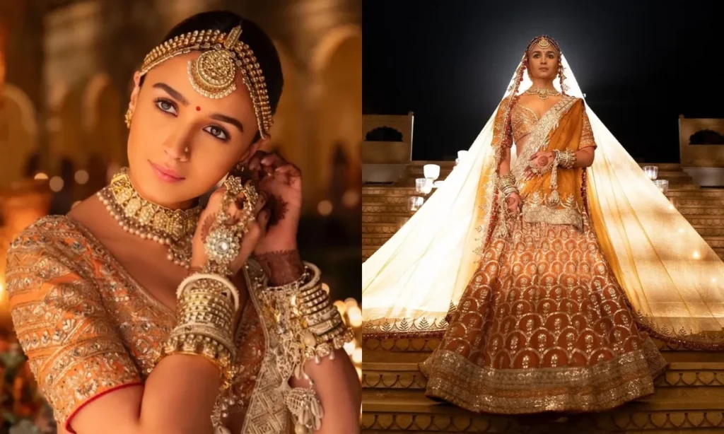 फिल्म ‘रॉकी और रानी की प्रेम कहानी’ में आलिया भट्ट मस्टर्ड लहंगा पहनकर दुल्हन बनी थीं. इसे मनीष मल्होत्रा ने डिजाइन किया था. हाल फिल्हाल के दिनों में आलिया के ब्राइडल लुक ने यंग गर्ल्स का ध्यान सबसे ज्यादा अपनी तरफ खींचा है. फिर चाहे वो रियल लाइफ में हो, या रील लाइफ में.