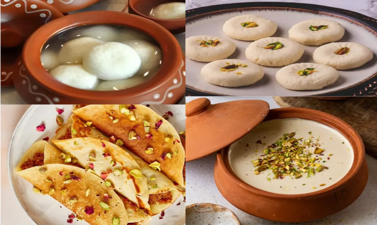 बंगाल में त्योहारों पर और खासकर नवरात्रि पर पातिशाप्ता जरूर बनता है. सूजी और मैदा के घोल का चीला बनाकर इसमें गुड़, नारियल और खोया की फिलिंग की जाती है. इसके अलावा कोलकाता में रसमलाई और जलेबी जैसे और भी कई मिठाइयां फेमस हैं.