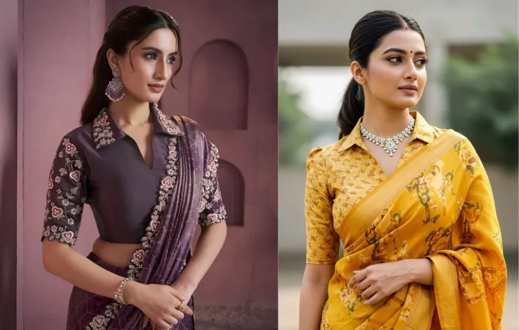 अगर आप वर्किंग वुमन हैं या आपको क्लासी लुक पसंद है तो सिंपल और एलिगेंट कॉलर ब्लाउज आपके लिए परफेक्ट हैं. कॉलर ब्लाउज डिजाइन ओल्ड विंटेज और प्रोफेशनल लुक देता है. फैशन की दुनिया में सबसे हटके दिखने के लिए कॉलर ब्लाउज एक अच्छी चॉइस है. यह पार्टी से लेकर शादी तक, हर मौके पर स्टाइलिश और ग्रेसफुल लगता है. चाहे आप सिल्क साड़ी पहनें या जॉर्जेट, यह ब्लाउज किसी भी तरह की साड़ी को युनीक टच देता है. इस आर्टिकल में आपको कॉलर ब्लाउज के कुछ लेटेस्ट डिजाइन दिखाए गए हैं, जो लुक को और खास बना देंगे.