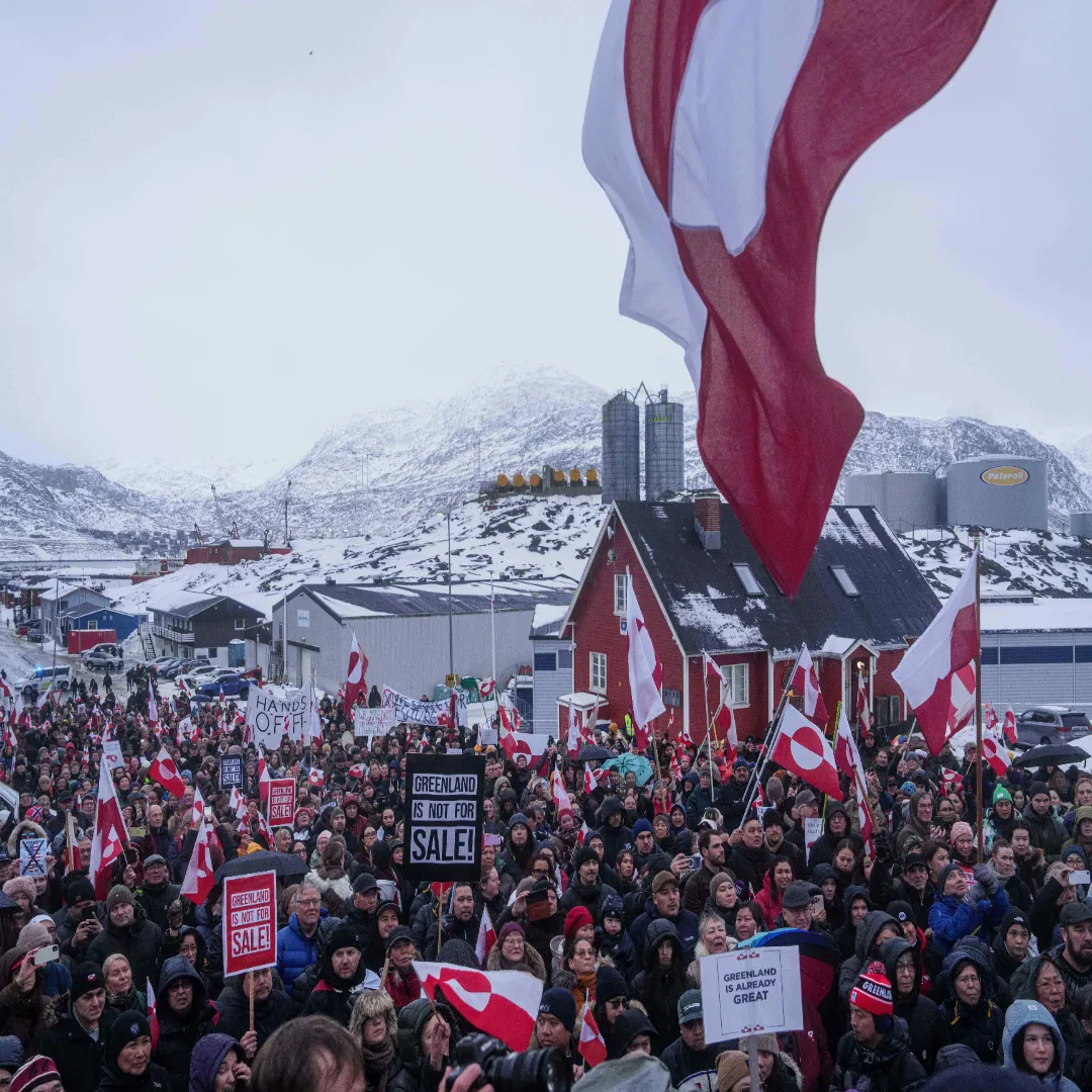 ग्रीनलैंड विरोध: ग्रीनलैंड को खरीदेने के लिए वैश्विक स्तर पर अमेरिका की आलोचना हो रही है. इसी के साथ अब ग्रीनलैंड के लोग भी इसके खिलाफ एकजुट हो गए हैं. शनिवार को हजीरों ग्रीनलैंड के लोग राष्ट्रपति डोनाल्ड ट्रंप के खिलाफ आवाज उठाने के लिए सड़कों पर उतरे. उन्होंने विरोध के लिए अपना नेशनल फ़्लैग लहराया और सेल्फ-गवर्नेंस के सपोर्ट में “ग्रीनलैंड बिकाऊ नहीं है” के नारे लगाए. जमा देने वली ठंड में ग्रीनलैंड की राजधानी नुउक के छोटे से डाउनटाउन में लोगों ने विरोध प्रदर्शन किया.