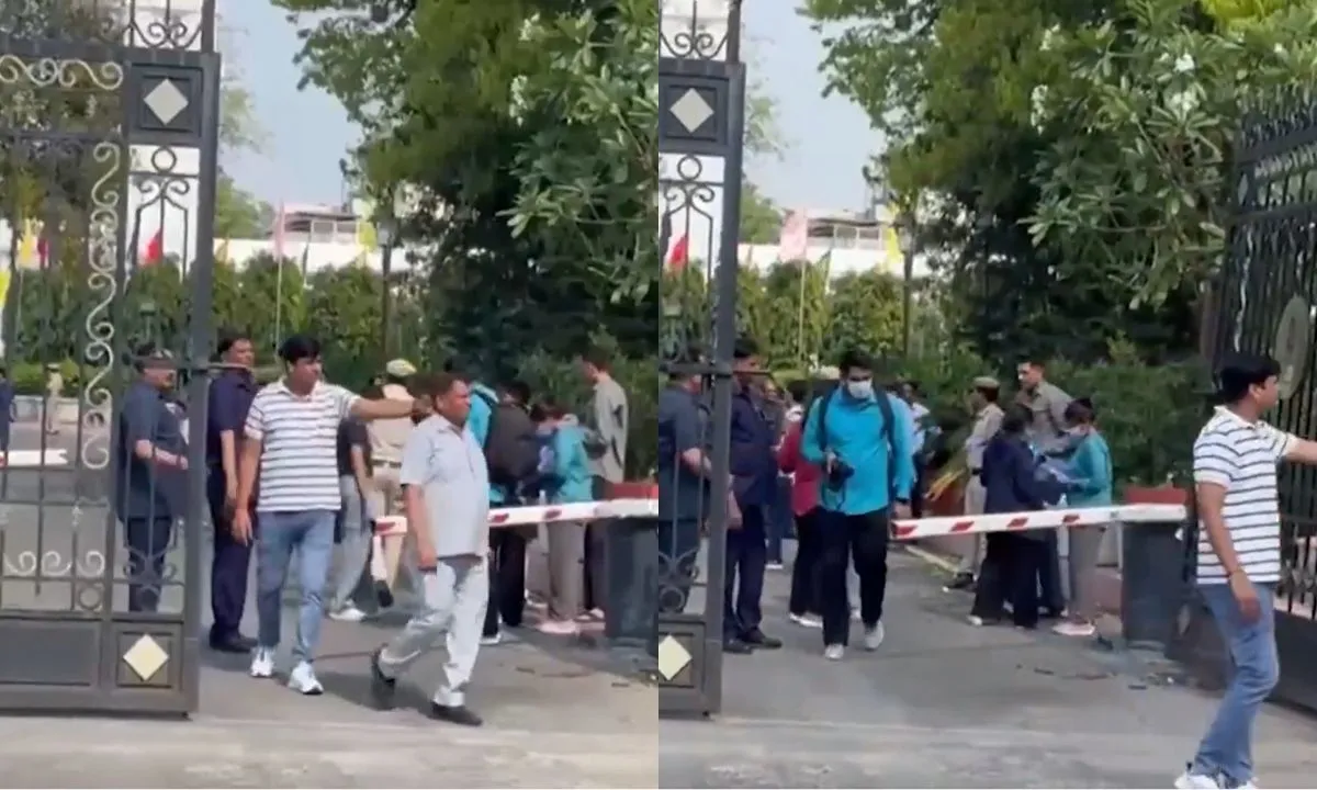 वीडियो | दिल्ली: सुरक्षा बाधाओं को तोड़ते हुए एक कार द्वारा परिसर में जबरन प्रवेश करने के प्रयास के बाद दिल्ली विधानसभा परिसर के बाहर के दृश्य।