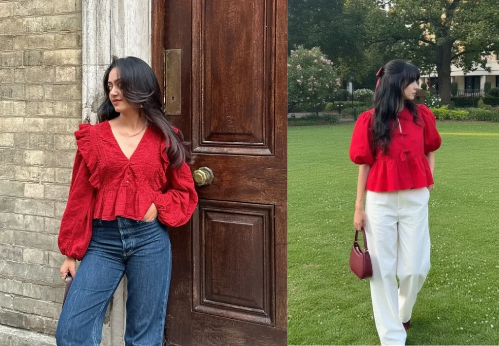 अगर आपको ड्रेस नहीं पहननी तो आप क्यूट रेड टॉप के साथ भी वैलंटाइन डे स्पेशल बना सकती हैं. लूज और एस्थेटिक क्यूट टॉप आप पर बहुत सूट करेगा. आउटफिट एनहांस करने के लिए एक स्टेटमेंट आइटम जरूर कैरी करें जैसे- एक मरून पर्स या मरून हील्स. हेयरस्टाइल के साथ थोड़ी क्रिएटिविटी दिखाने से परफेक्ट लुक मिलेगा.