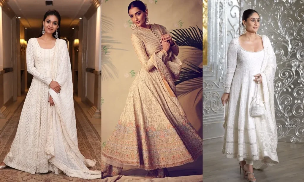 लखनऊ की मशहूर चिकनकारी जब अनारकली स्टाइल में ढलती है, तो एक अलग ही लुक मिलता है. पेस्टल कलर्स में चिकनकारी अनारकली सूट दिन के फंक्शन्स के लिए बेस्ट रहते हैं. इनके साथ पर्ल जूलरी पहनकर आप किसी शाही खानदान की राजकुमार जैसी लगेंगी.