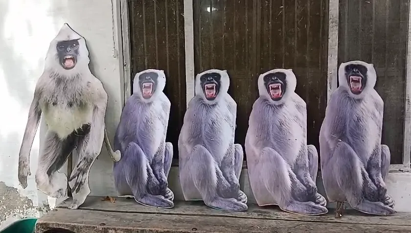बंदरों के लिए लगाए लंगूरों के कटआउट
