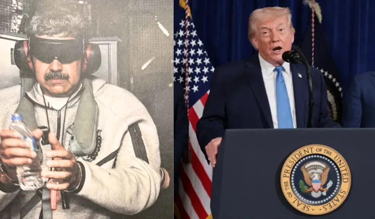 शुक्रवार रात को अमेरिकी सेना ने वेनेजुएला की राजधानी काराकास में एयर स्ट्राइक की. रात भर धमाके करने के बाद राष्ट्रपति मादुरो और उनकी पत्नी को उनके घर से पकड़ा गया था और उन्हें पहले एक अमेरिकी युद्धपोत पर ले जाया गया. इसके बाद अमेरिकी सेना उन्हें न्यूयॉर्क लेकर पहुंची. अमेरिका द्वारा जारी की गई निकोलस मादुरो की तस्वीर में देखा जा सकता है कि उन्हें एक अपराधी की तरह बंधक बनाकर ले जाया गया. ट्रम्प ने अपने सोशल मीडिया अकाउंट पर एक तस्वीर पोस्ट की थी जिसमें मादुरो की आंखों पर पट्टी बंधी थी और उनके हाथों में हथकड़ी थी. वह एक जहाज पर ट्रैकसूट पहने हुए थे और उन्हें लड़खड़ाते हुए देखा गया.