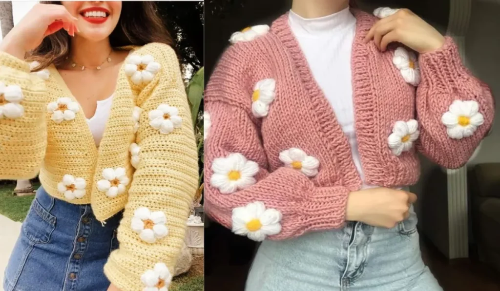 This vibrant colored cardigan sweater looks very cute. Its white flowers make it most lovely and aesthetic. If you go to college or anywhere wearing this sweater, everyone will definitely praise you. Your photos will also come ready in this sweater.