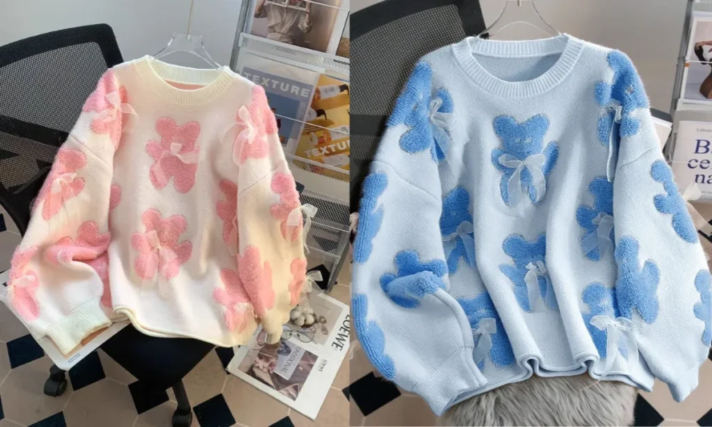 These types of sweatshirts also look very cute. The small teddy bears and their ribbon bows made on it are very cute. The color of both the sweaters is very aesthetic. The design of these sweaters is also quite unique. Every girl likes a teddy bear, so if you want, you can gift it to someone.