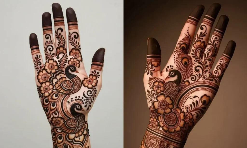 Peacock design of mehendi is considered perfect for every festival. These are very easy to apply and look very attractive. If you also want to look stylish on the special occasion of Diwali, then you can try this mehndi design.