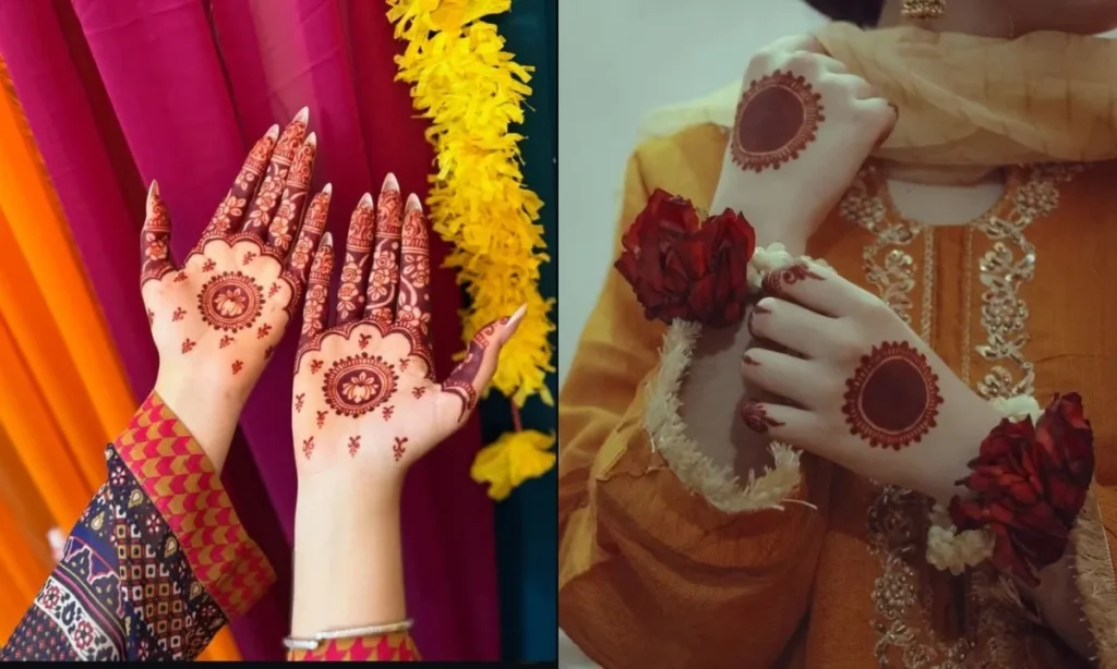 हथेली के बीच में एक गोल घेरा बनाएं और उसके किनारों पर छोटे-छोटे फूलों की पंखुड़ियां जोड़ दें. उंगलियों पर छोटे-छोटे पत्ते बना दें. ये डिजाइन जितना सिंपल है, उतना ही सोबर भी. इस तरह का मेहंदी डिजाइन आपके हैवी आउटफिट के साथ बहुत खूबसूरत लगेगा.