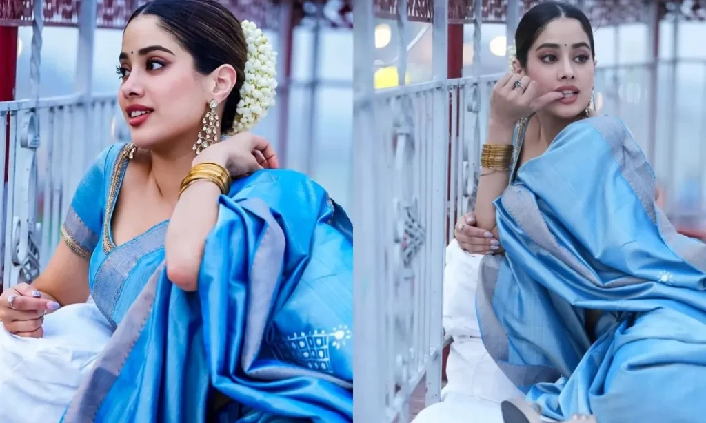 सिल्क साड़ी का ट्रेंड और फैशन कभी नहीं जाता. यही वजह है कि इन साड़ियों की डिमांड कभी कम नहीं होती. जान्हवी भी ब्लू कलर की सिल्क साड़ी में बहुत ही खूबसूरत लग रही हैं. आप भी उनकी तरह ट्रेडिशन लुक चाहती हैं तो, एक सिंपल सिल्क साड़ी अपने कलेक्शन में जरूर रखें.