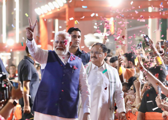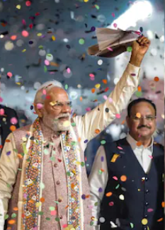 New Delhi BJP Headquarters: BJP celebrated the victory of Bihar elections in Delhi. Modi reached BJP headquarters waving towel.