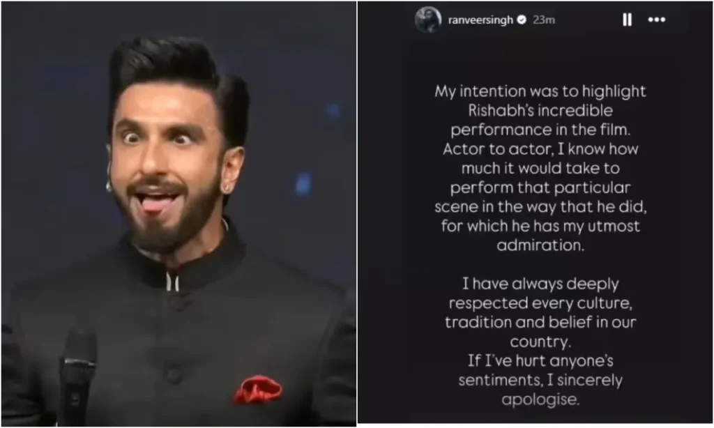 Ranveer Singh Apologises: A small fun moment of Bollywood star Ranveer Singh at the closing ceremony of IFFI 2024 has now become big news. Actually, what happened was that Ranveer copied a famous scene from the film ‘Kantara: A Legend Chapter-1’ on stage. This was the same scene in which the hero sticks out his tongue. At that time the audience took it as a joke, but social media made it a big issue in a moment.