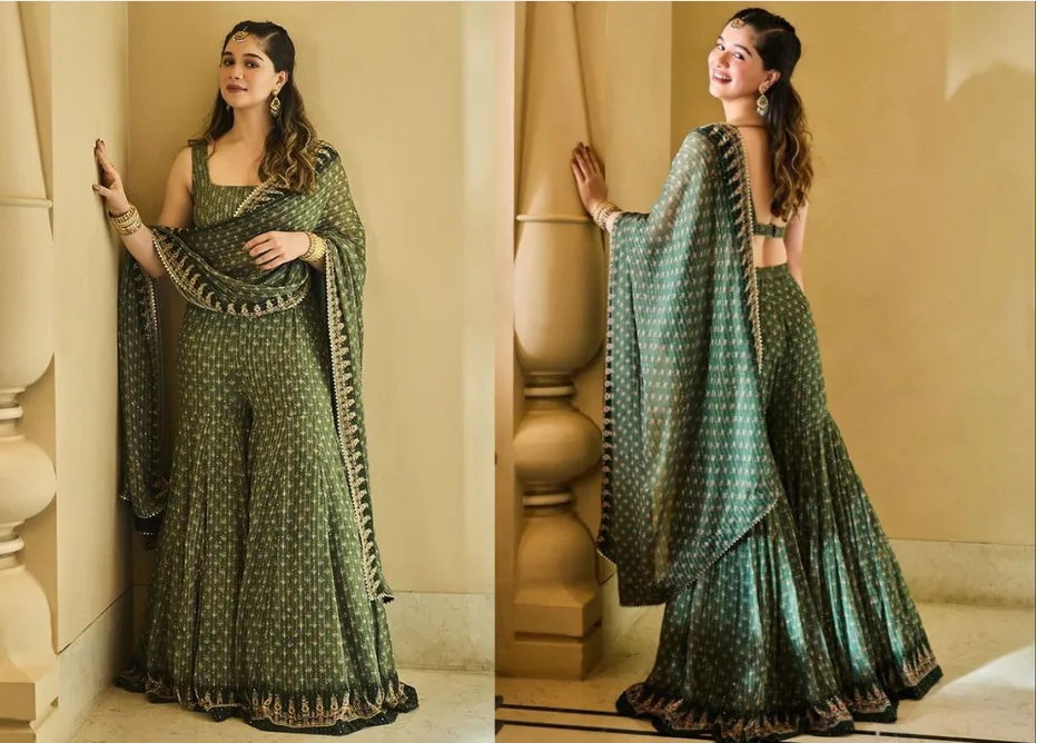 सारा तेंदुलकर की यह शरारा ड्रेस भी बहुत यूनीक लग रही है. उनका शरारा का फ्लेयर बहुत ही शानदार है. आप मॉडर्न लुक के लिए इसके साथ क्रॉप टॉप पहन सकती हैं या ट्रेडिशनल लुक के लिए सूट पहन सकती हैं. इस ड्रेस में आपका फ्लेयर्ड शरारा स्टेटमेंट है. आप हेयरस्टाइल के लिए साइड पार्टिशन कर सकती हैं और हेवी झुमके पहन सकती हैं.